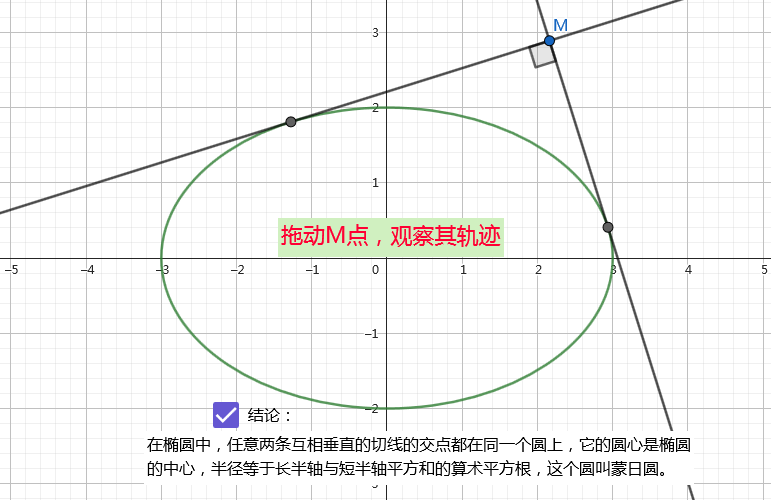 2.借助描点工具,在蒙日圆上构建点M;