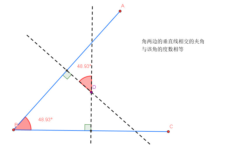 该模板描述了任意角与其两边垂线所形成的夹角关系。用户可以通过拖动角的两条射线,观察夹角的变化,从而更深入地理解角的概念。同时,该模板也突显了垂线与夹角之间的关系,即垂直相交的两条线所形成的夹角是直角,这有助于学生理解角的特性以及垂线的几何性质。