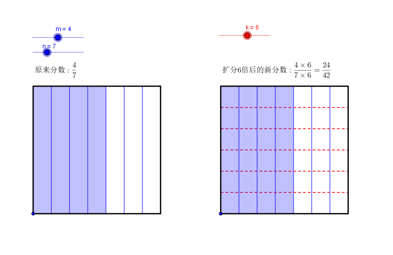 MathTool数学画板模板展示了将分数进行扩分的过程。分数扩分是指将一个分数的分子和分母同时乘以相同的数,得到一个等价的分数。通过展示分数扩分的具体步骤和结果,可以帮助学生更好地理解分数扩分的操作,并掌握分数扩分的方法和技巧。